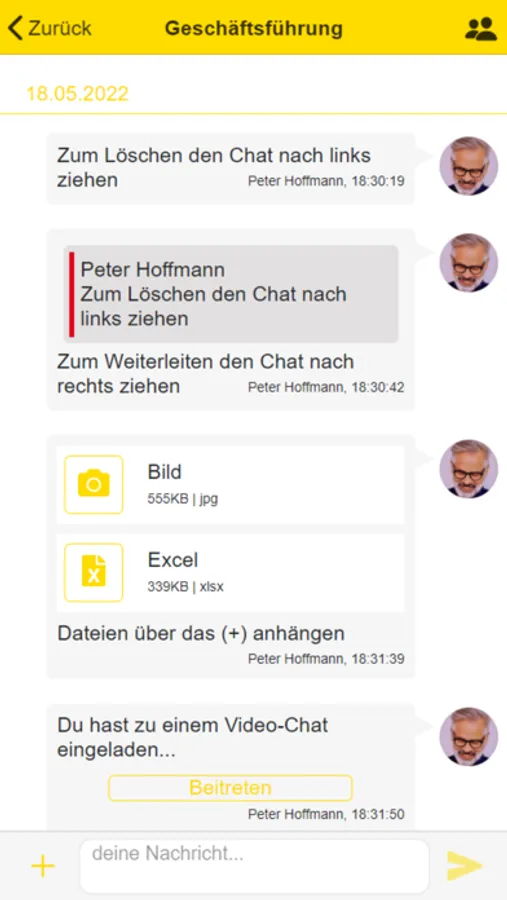Egal ob Termindienst, Vorbereitung der Arbeit unserer Arbeitsgruppen oder die Planung und Realisierung der Ausbildung, mit dieser App ist der schnelle Austausch der Informationen jeder Zeit möglich.