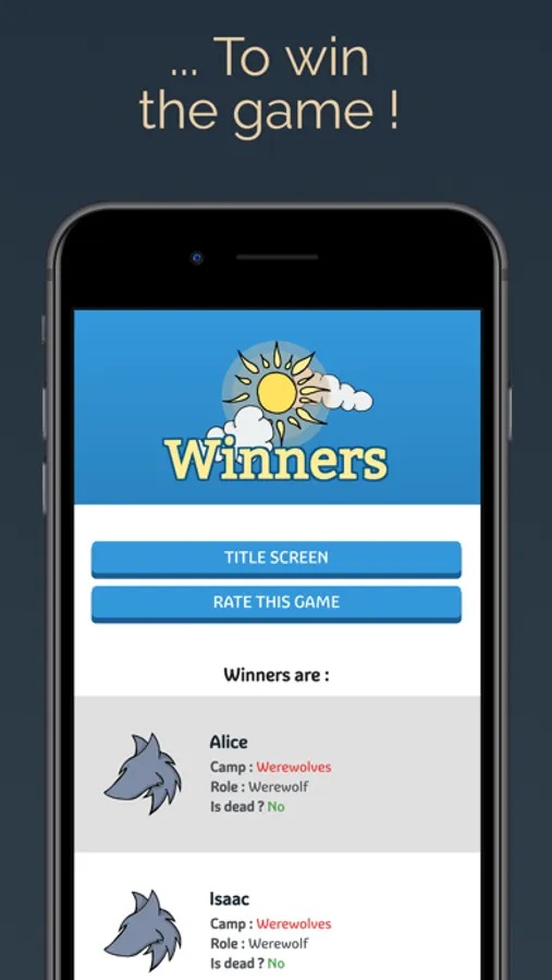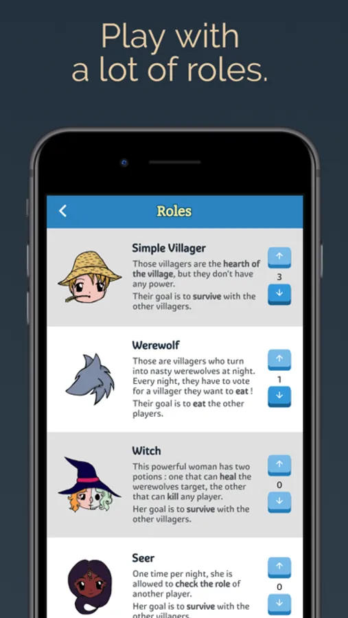 the Witch, the Seer, the Cupid, and many more ! Be sure to use their abilities very well in order to triumph over the opposing side.