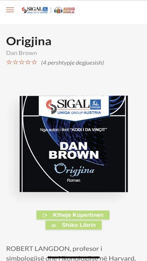 SIGAL Audiobooks.al është projekti më i ri në Shqipëri, i cili mundëson dëgjimin e librave më të mirë në audio. Autorët më në zë të huaj dhe shqiptarë janë përzgjedhur për dëgjuesit e të gjitha grupmoshave.