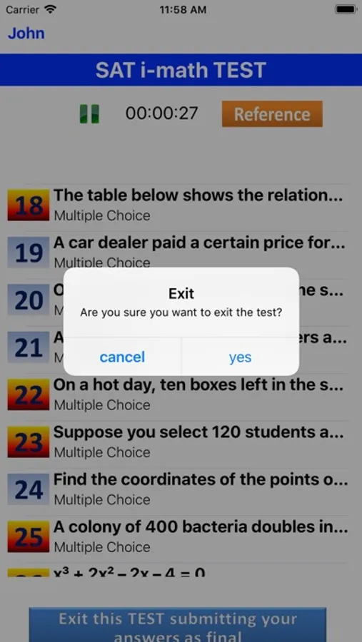 → test with 58 questions (following the specifications of the new SAT math test)