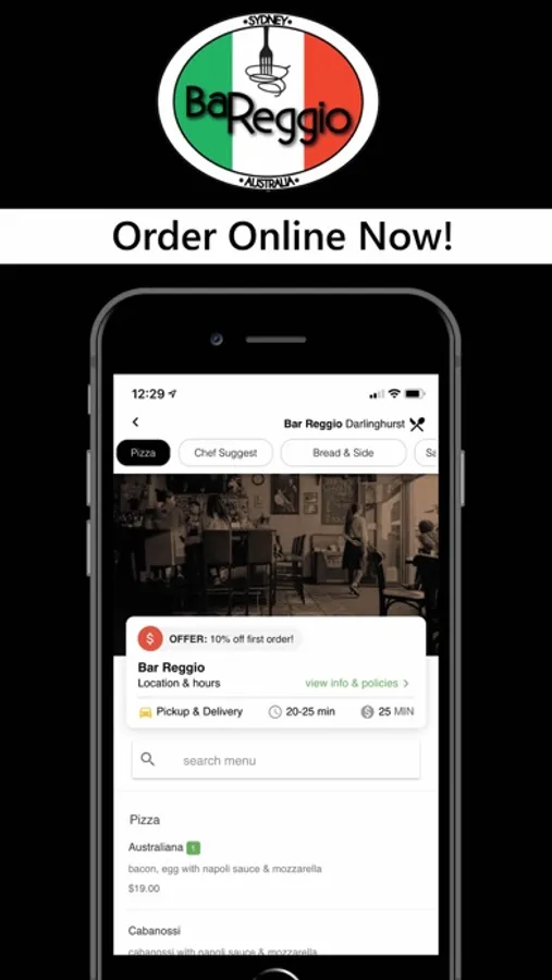 Pre-order your food and drinks with our Bar Reggio App and pay using Cash, Loyalty or Credit Card.