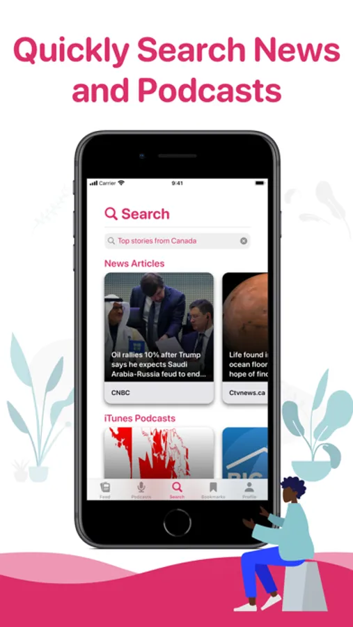 Finally, all this information means we need a great way to organize and search through it. Once again, we've relied on machine learning for this task. Rather than fine-tune every aspect of your search, simply search using natural language. For example: "Search all podcasts for latest news" or "Display the top technology news" gives you just that. Nothing that you wouldn't expect.