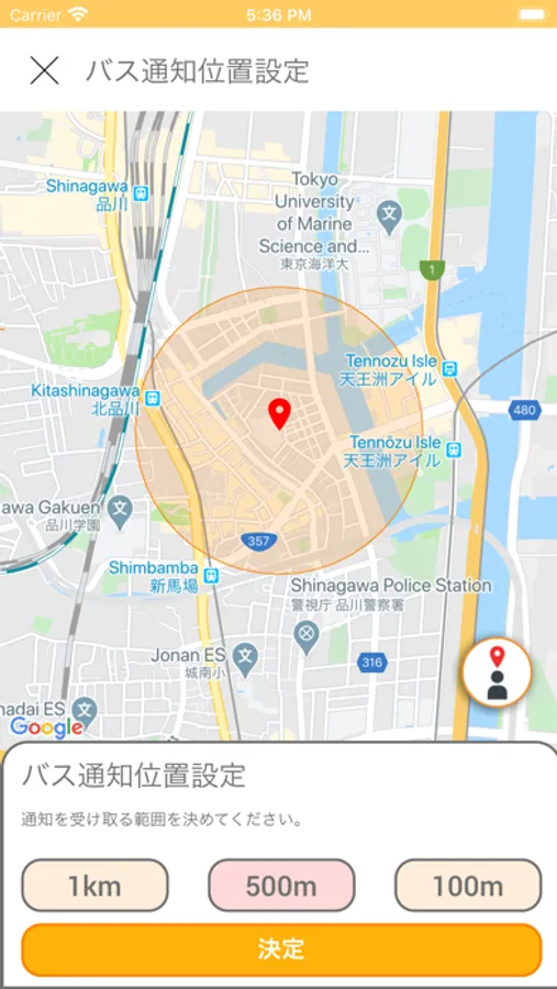 送迎車の位置の確認や、指定位置を通過すると通知を受け取ることができます。