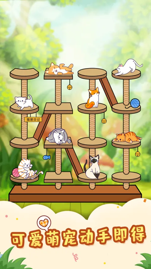 1.【培养猫咪】在线养猫,自动增长的钻石可领养超Q猫咪,合并小猫帮它长大,小猫级别越高自动产生的钻石越多哦~