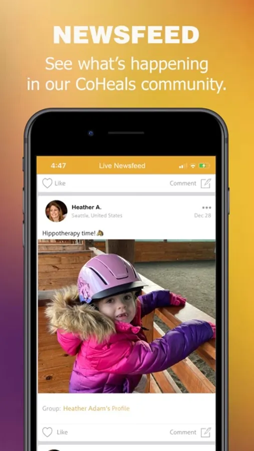 Community Heals (CoHeals) is designed for cancer parents, by cancer parents/primary caregiver to connect families who are impacted by pediatric cancer. CoHeals is the first app that allows parents/primary caregiver to actively search for other cancer families by cancer type, treatment phase, location, hospital, age, sex, and gender. Members of CoHeals will find support, resources, and community.