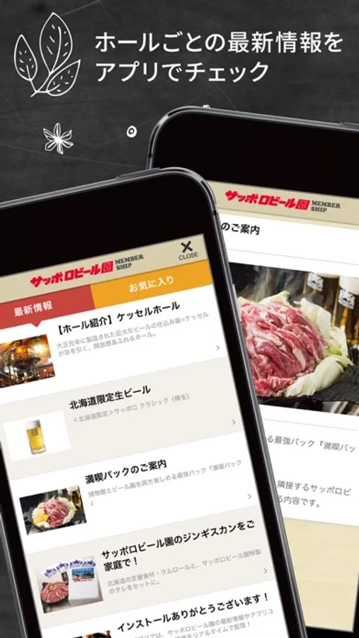 サッポロビール直送のビールと北海道名物のジンギスカンを心ゆくまでご堪能ください。