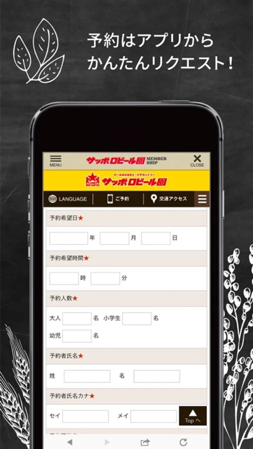 ホールや日時、メニューなどなどを選ぶとアプリからかんたんに予約をリクエストできます。
