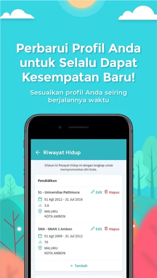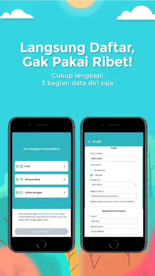 Dengan mengisi tiga bagian data diri (Profil, Riwayat Hidup, dan Pilihan Mengajar), Anda langsung dapat mengikuti proses seleksi selanjutnya. Rangkaian seleksi berjalan secara transparan, Anda dapat cek progress seleksi yang sedang berjalan.