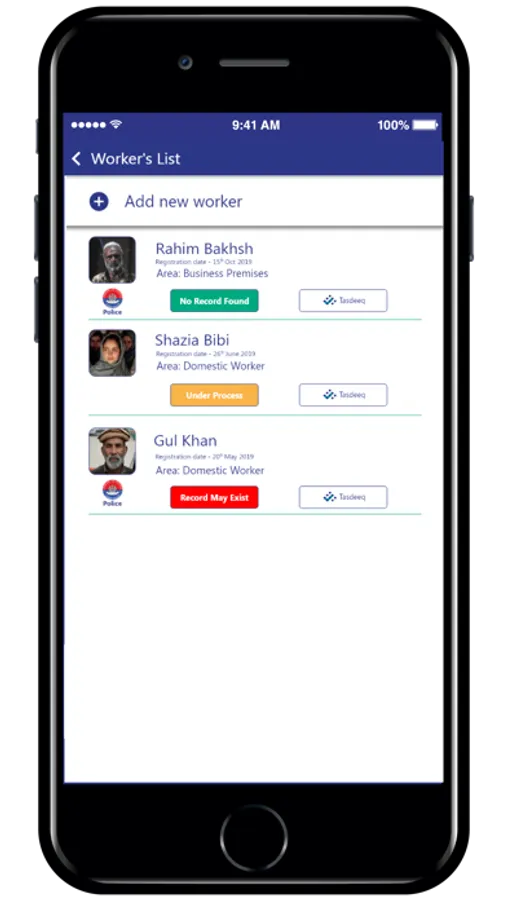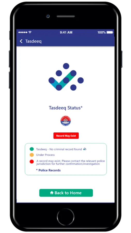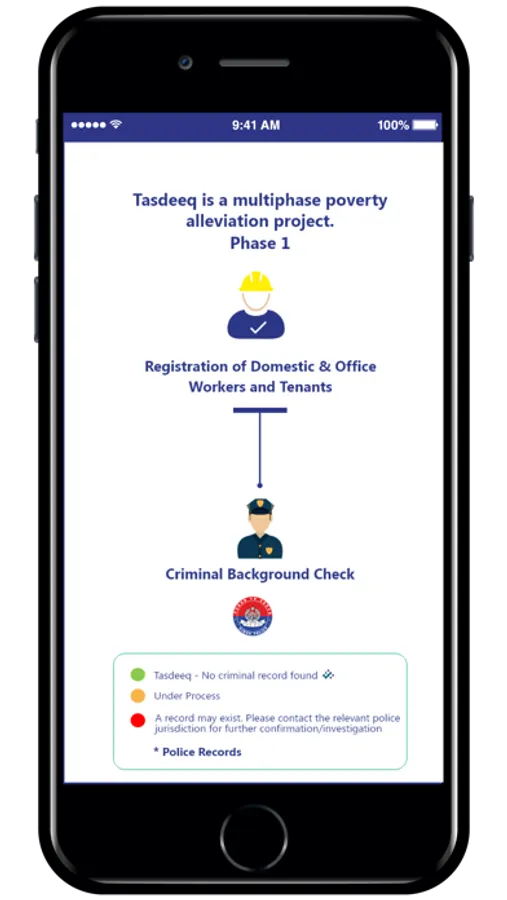 Tasdeeq is a Safe Pakistan Welfare Trust (NGO) driven initiative by concerned citizens of Pakistan to help secure households & communities. The aim is to bring Law Enforcement Agencies, Employers, Workers, Financial Institutions, Educational Institutions, Multilateral Agencies, NGOs and Social Enterprises on one platform to help create a winning environment for the society.