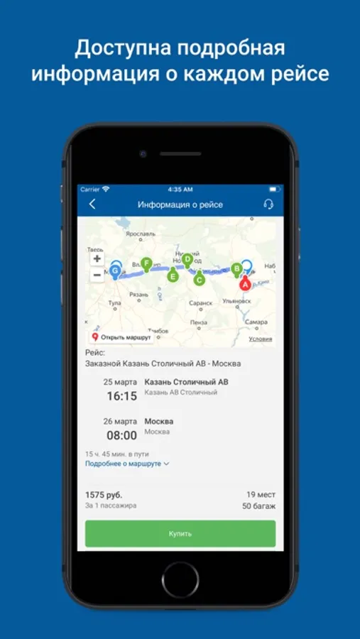 - поиск рейса и просмотр расписания автобусов на конкретную дату