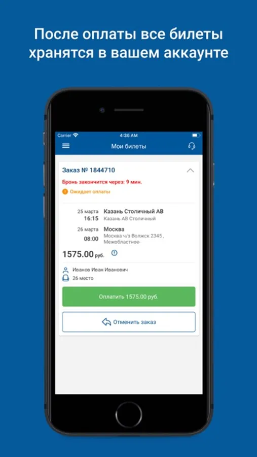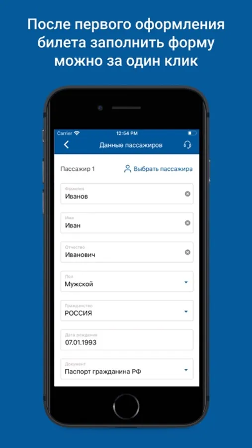 - автоматическая подстановка данных пассажира при последующих покупках электронных билетов