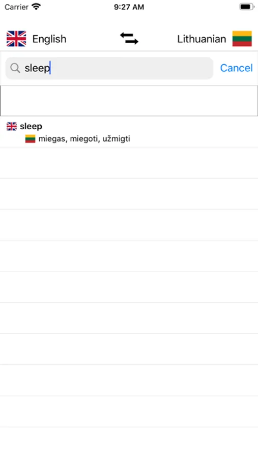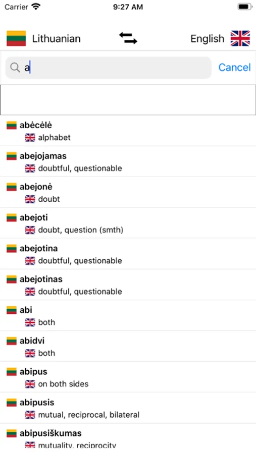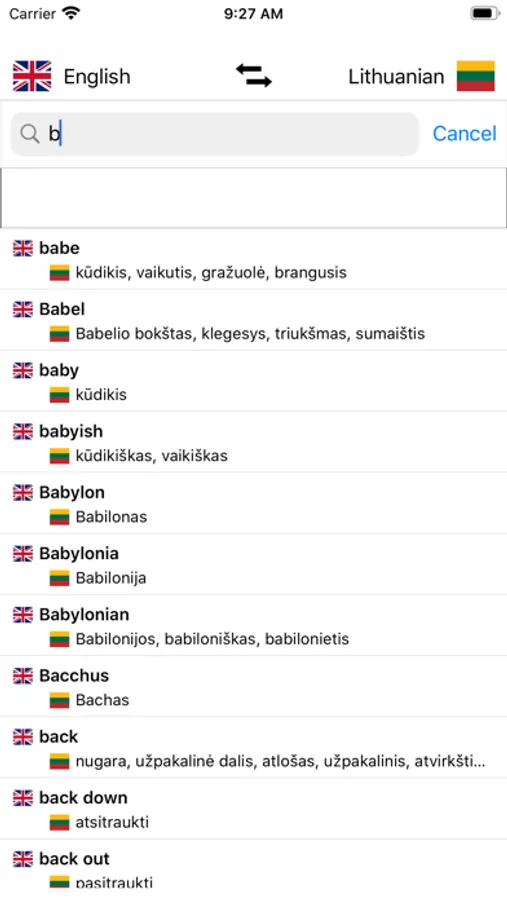 - Search from Lithuanian words and from English words