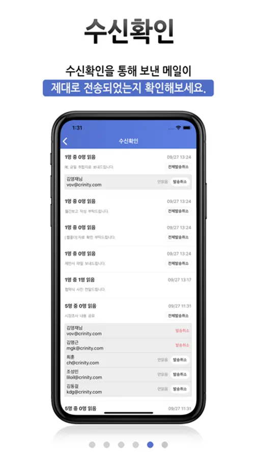 - 발송된 메일에 대해 수신확인이 가능합니다.