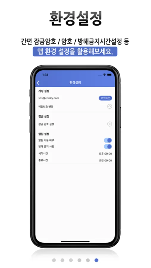 - 알림설정 및 방해금지 사용시간 설정이 가능합니다.