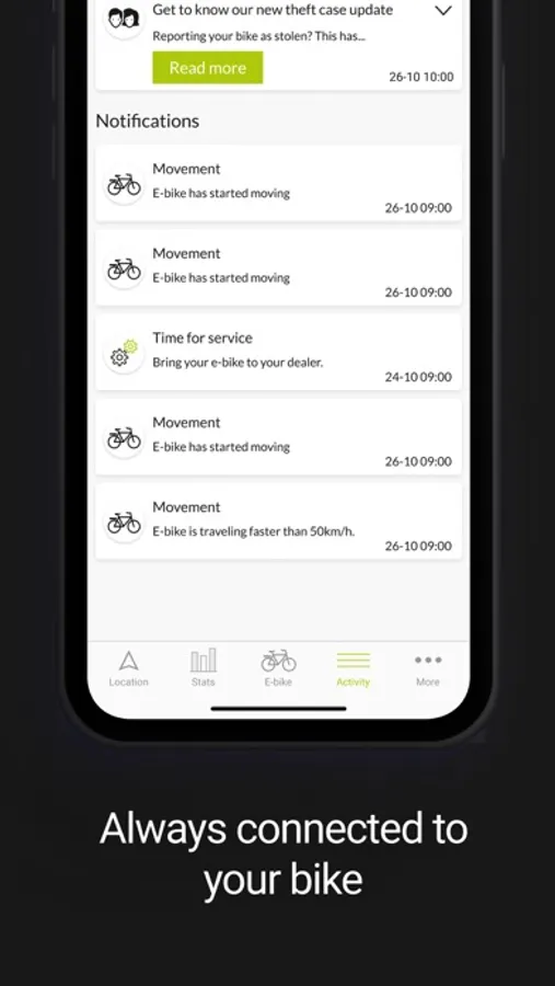 Would you like to receive notifications when you enter or leave a location? Then this app has you covered, you can create as many virtual ‘geofences’ as you like that alert you and anyone that has access to your bike whenever your bike reaches those locations.