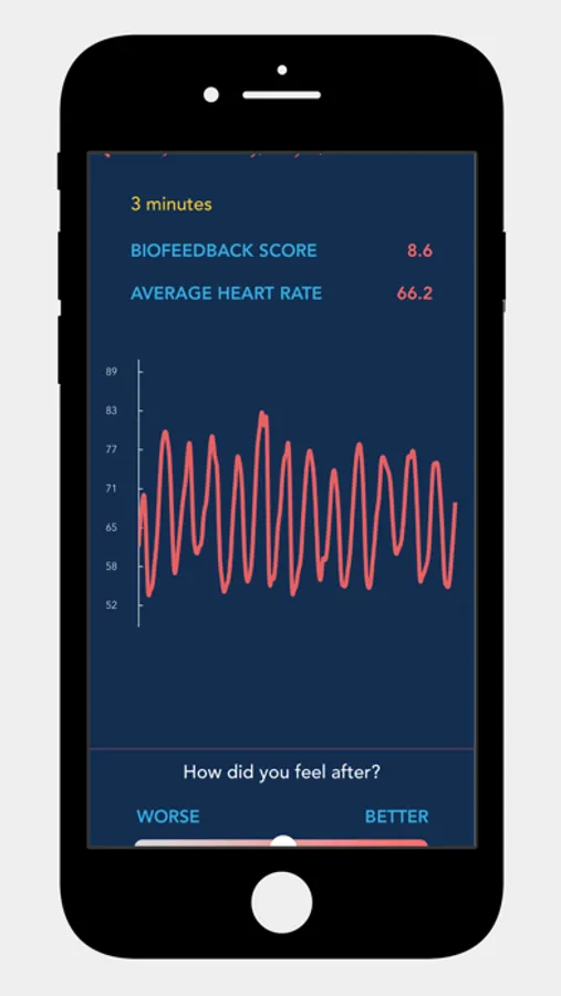 > biofeedback score to quantify the effectiveness of the practice in terms of deep breathing and duration