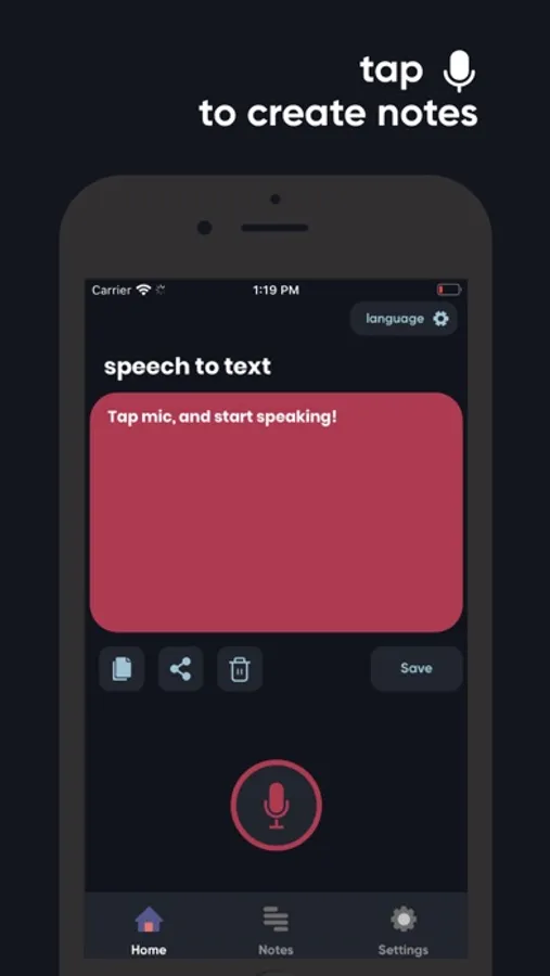 • Convert Speech To Text - Press the Mic button and start speaking to convert your speech to text.