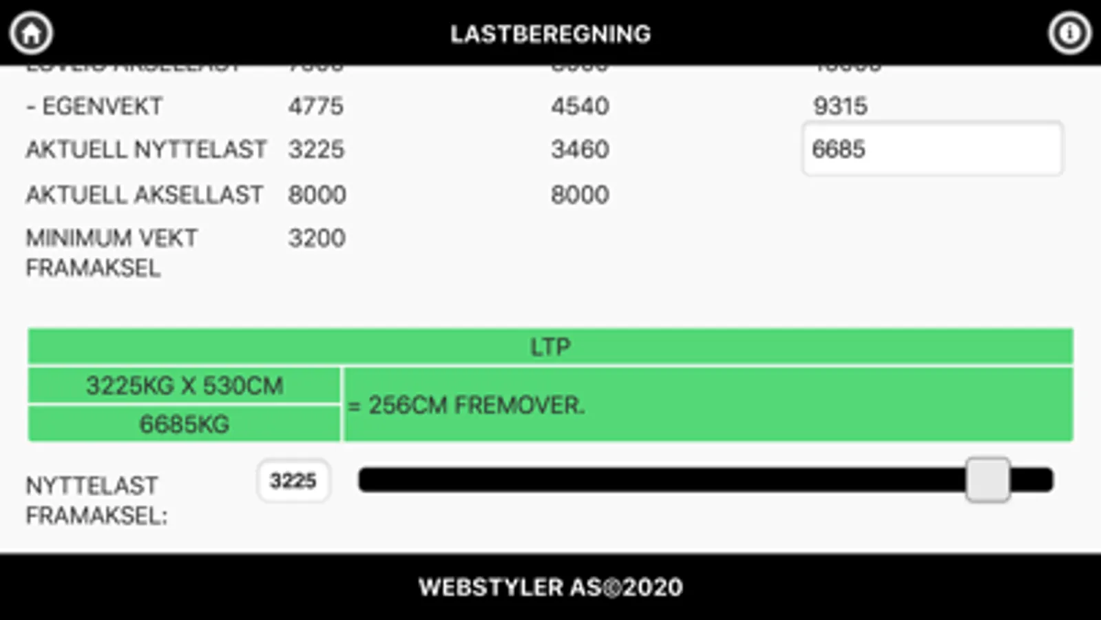 Legg til ett eller flere kjøretøy, og beregn maks tillatt nyttelast/aksellast, eller legg inn nyttelast selv.