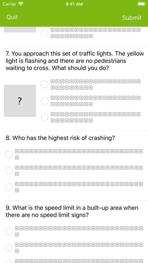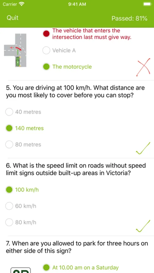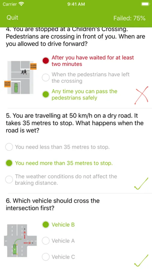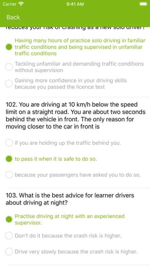 wrong answers link you to the chapter where the information is covered in the Road to Solo Driving handbook.