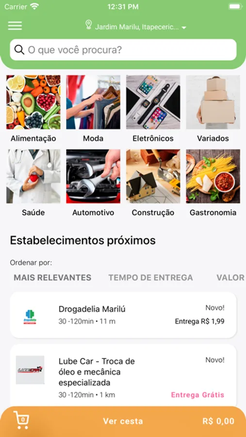 Aplicativo de marketplace com categorias pré-determinadas e de fácil acesso, tais como padarias, farmácias, petshops, materiais de construção, ferragens, etc. Uma solução online para vendas de comércios locais, onde os consumidores poderão encontrar cada estabelecimento, efetuar buscas de mercadorias, fecharem suas compras e receberem suas mercadorias na comodidade de seus lares, ou onde quer que estejam.