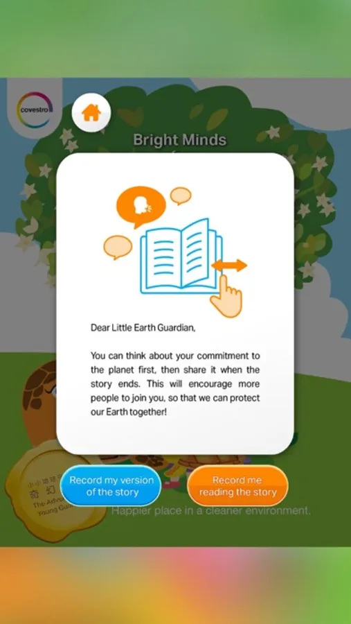 “Bright Minds for a Brighter World” is a narrative-based, bilingual mobile application that is published by Covestro (China) Ltd. The app highlights the devastating impact of litter on the marine environment, and aims to arouse the curiosity and stimulate the interest of children through fun activities and an exciting, interactive story. Covestro hopes to convey to young people the importance of proper waste management in taking care of the environment, as well as the 3Rs, while encouraging them to become “little Earth guardians” themselves, by helping to make our environment a cleaner and happier place.