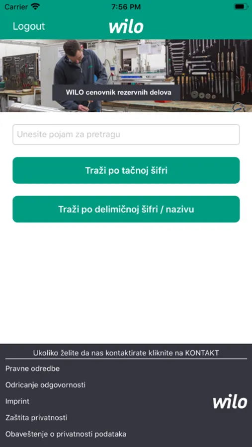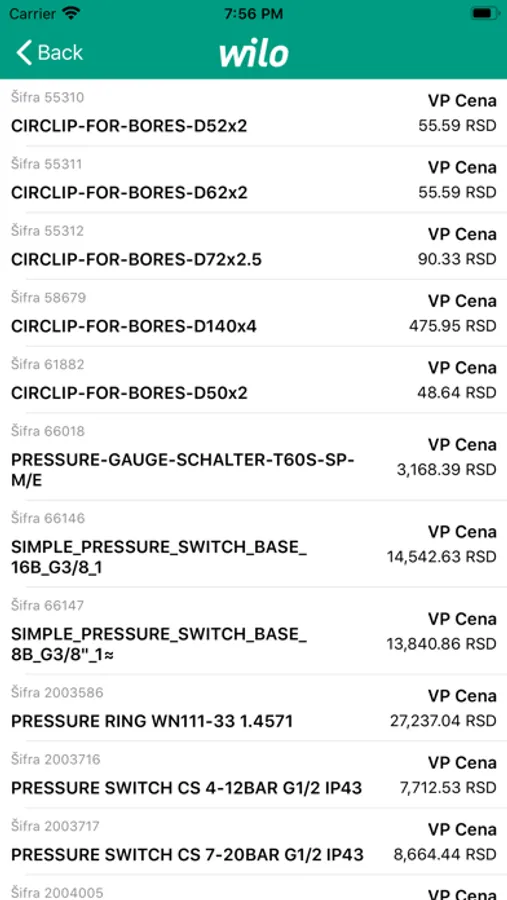 Wilo Service aplikacija namenjena je za saradnike i klijente preduzeća Wilo. Aplikacija korisnicima omogućava prikaz cenovnika delova Wilo opreme.