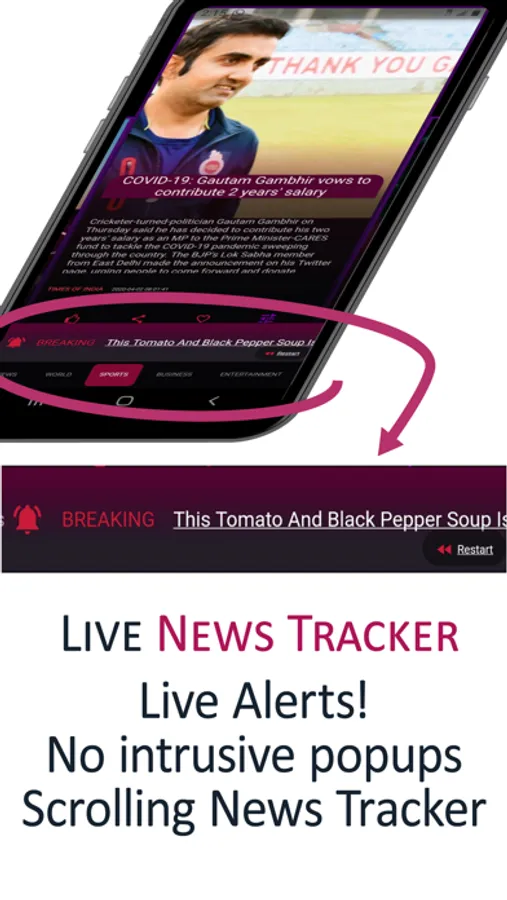 Breaking News scrolling headlines keeps you constantly updated, without having to receive annoying notifications.