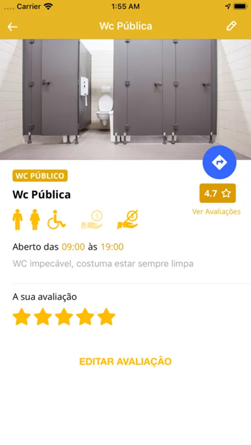 - Suporta informações sobre as casas de banho, se necessita de pagamento, se tem acesso para desabilitados, etc.