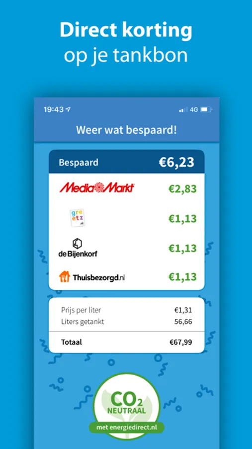 - Brandstofkorting per liter, direct bovenop de pompprijs