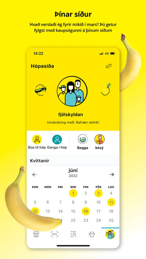 • Búið til innkaupalista og geymt, t.d. „sumarbústaðurinn“, „barnaafmælið“.