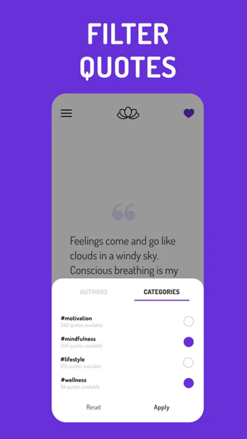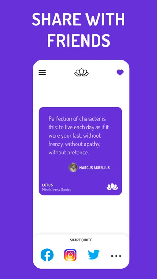 Easily create a favorite quotes list and share a quote that is presented in a nice design to your social media accounts. Subscribe to our push notifications to receive additional content on mindfulness.