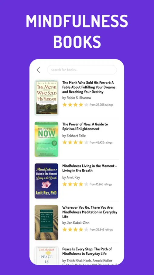 We have added a collection of the best mindfulness books from the most famous authors. Also, the quotes that are taken from a book will show the source near the bottom of the screen. To locate the books, just open the side menu and click "Books". You can also save your favorite books by clicking on the top right bookmark icon.