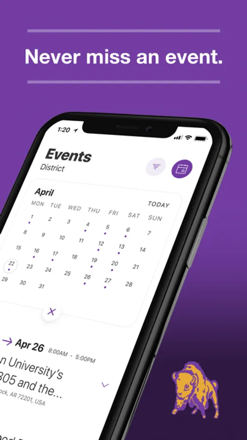 The event section shows a list of events throughout the district. Users can add an event to their calendar to share the event with friends and family with one tap.