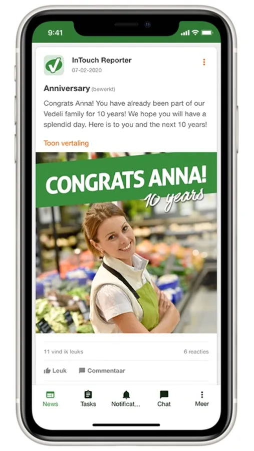 The app provides a method to reach persons inside and outside organizations and brings the social way of communicating we are used to together with extended and modern functionalities to efficiently manage operations in your organisation. It consists of timelines, news feeds, task management, easy to fill in forms (including an extensive form-builder), polling and chat features. All to provide a pleasant and familiar way of communicating on all levels. It supports an international multilingual environment with ease. Used by anyone working in retail, restaurant & hospitality or healthcare.