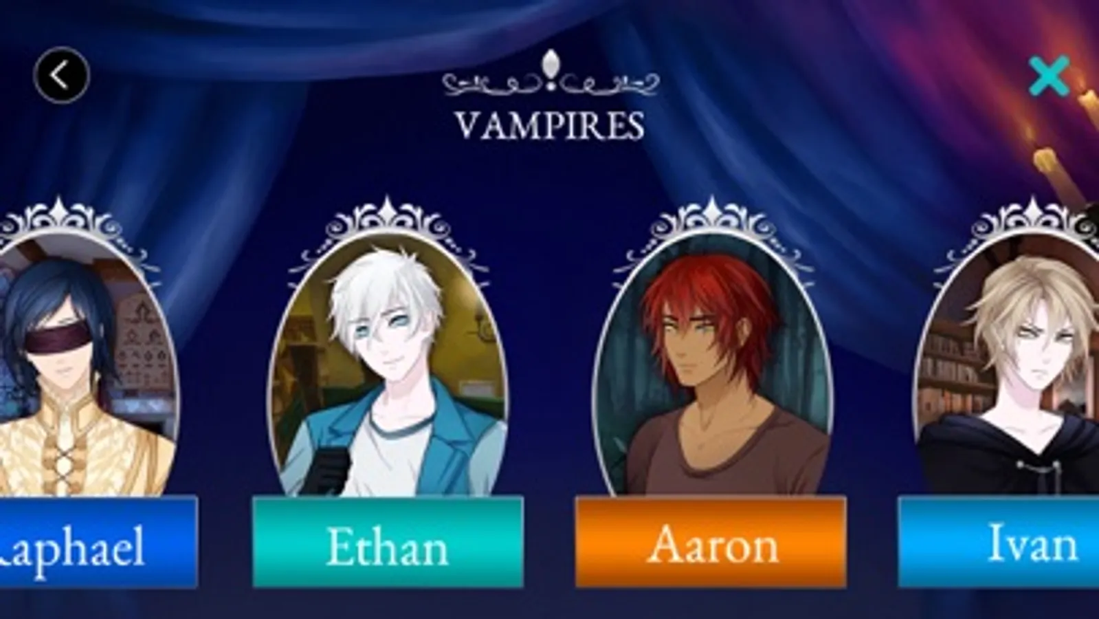Each story is divided into chapters. In each episode, you will need to make different choices to personalize your interactive story. You can play all the choice games of the Moonlight Lovers series for free and in any order. Each character has their own love story, their own adventure and their own mysteries… Your romance can end in three different ways in this choice game: it’s up to you to uncover the mysteries of the manor and the vampires that live there!