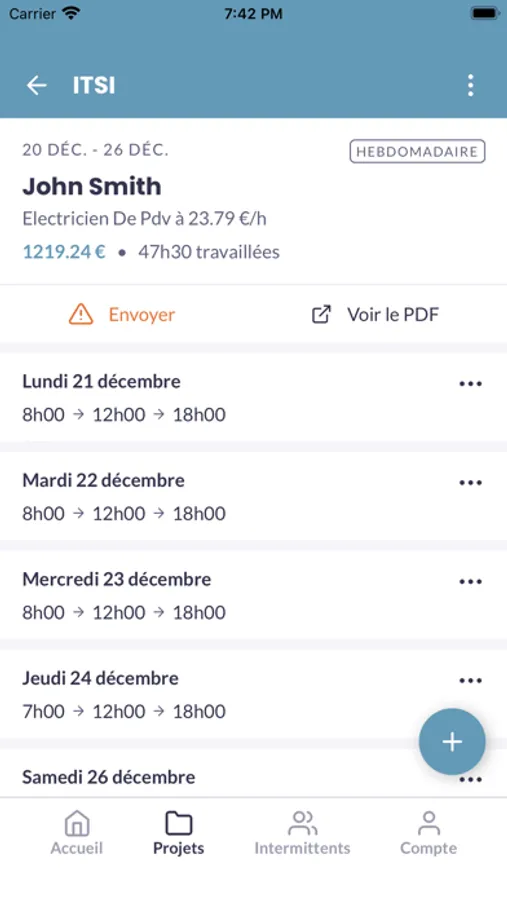L’application créée pour aider les techniciens sur la gestion de leur temps de travail et la création de leurs feuilles d’heures. Renseigner ses heures de travail, les communiquer et visualiser ses prévisions en un temps record.