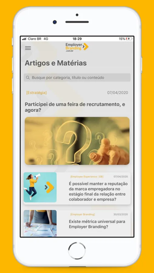 O app Employer Branding Brasil é uma forma rápida e simples de se ter todas as informações úteis sobre o que acontece de mais importante no mundo de Employer Branding e Recursos Humanos.
