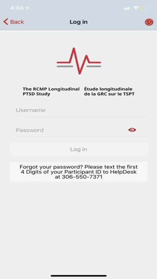 The RCMP PTSD Study app is for participants of the PTSD Study and assists with mental health monitoring and assessment through surveys, clinical appointments and technical support the app creates the opportunity to advance mental health treatments.