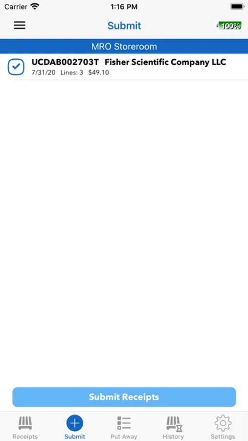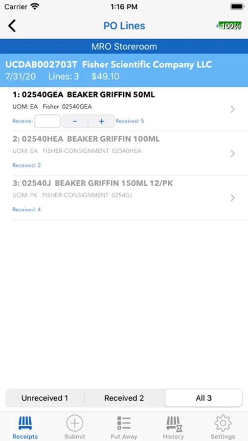 eProScan is an Order Management System that allows the user to order medical/surgical supplies for replenishment of supply rooms at hospitals. Each hospital or surgical center will see a list of store rooms associated with their location. Each store room contains a list of items that may be ordered. The user will scan bar codes to identify the item to order and enter the inventory count. The system will calculate the quantity to order up to the par level for that item. Once all items for a room are reviewed, the order can be submitted.