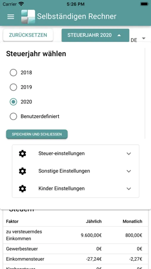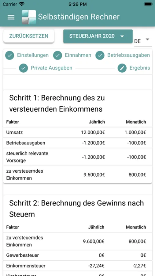 Der Einkommensrechner für Selbstständige und Freiberufler. Berechnen Sie in wenigen Schritten Ihr Einkommen aus selbstständiger und freiberuflichlicher Arbeit. Automatische Berechnung der Einkommenssteuer, der Gewerbesteuer und viele weitere Optionen.