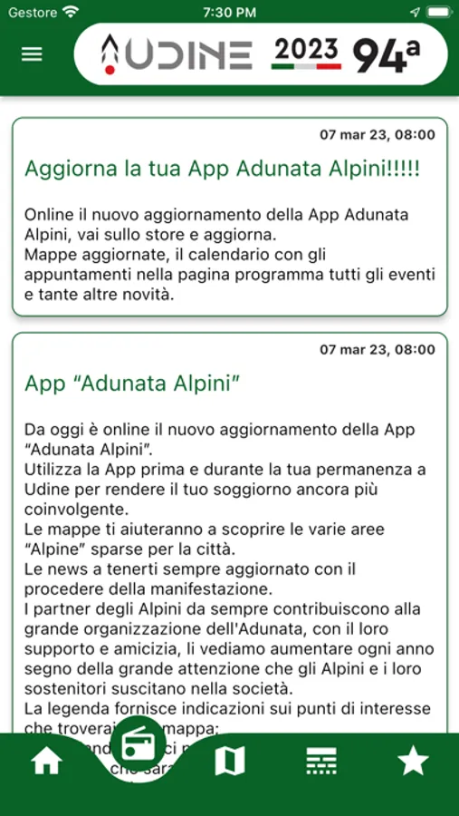 L'app Adunata Alpini porta le informazioni aggiornate in tempo reale sull’adunata direttamente a portata di mano del visitatore.