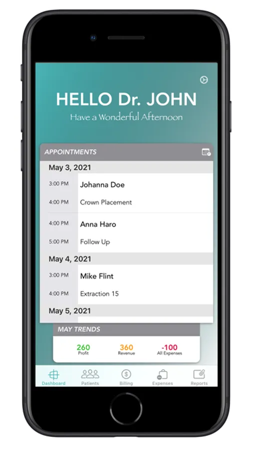 The Smart Dentist is a complete, modern solution for your Dental Practice, designed for your every day use with speed and security in mind. Keep track of your patients and their procedures, schedule appointments, generate bills and invoices and view beautifully curated reports with a tap of your finger.