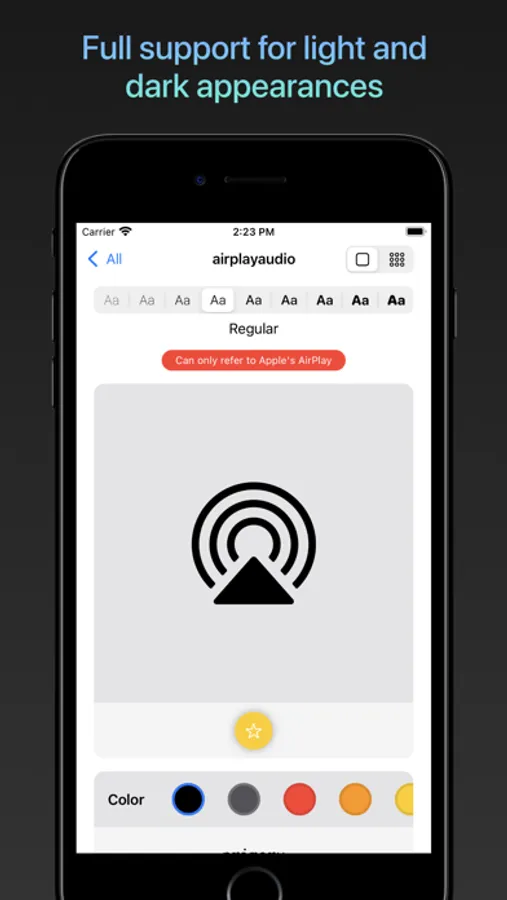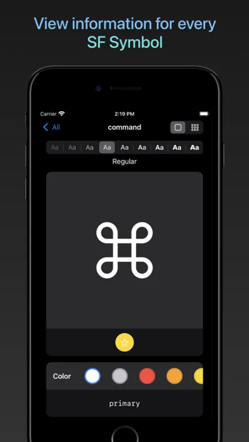 Compare every weight of each symbol by simply tapping on the desired weight. Will it look better in semibold or heavy? San Fransymbols makes it easier than ever to decide.
