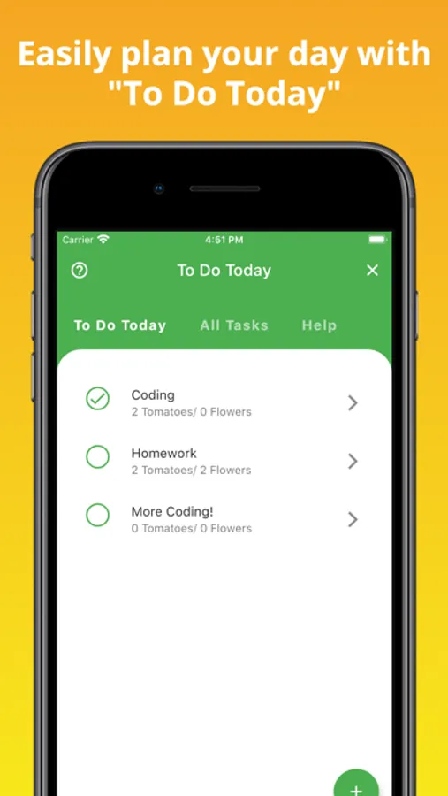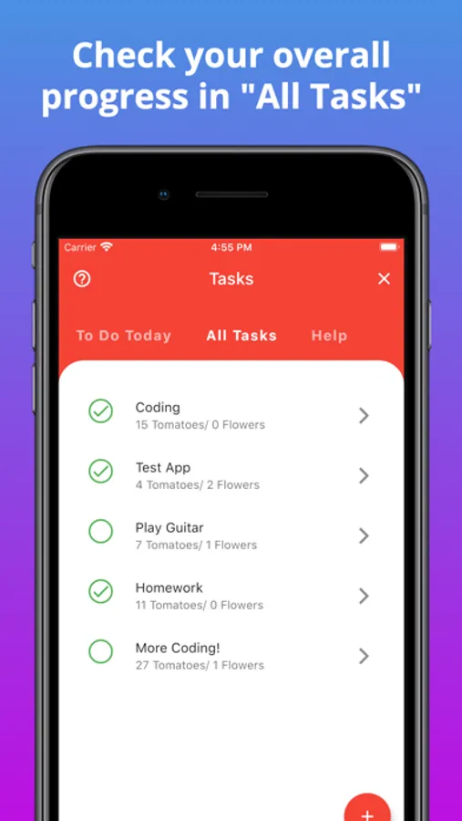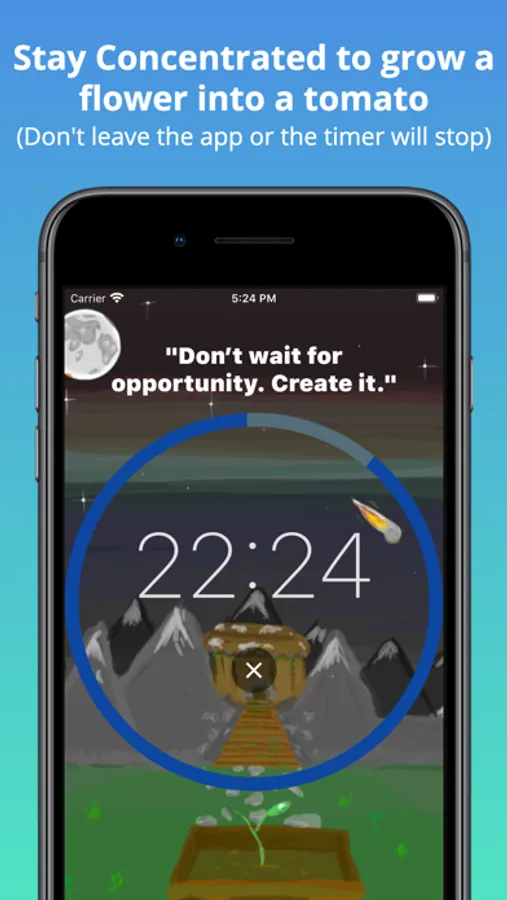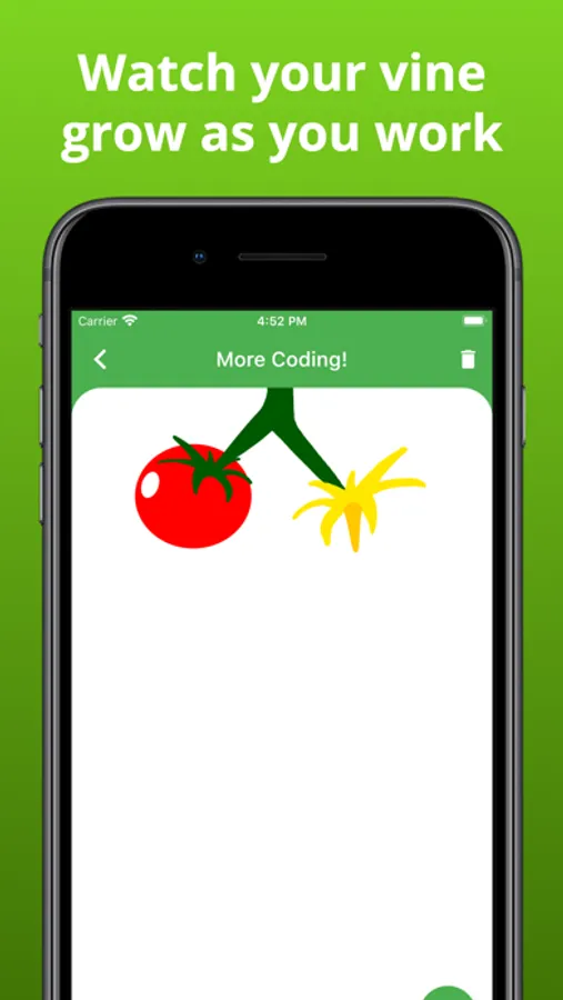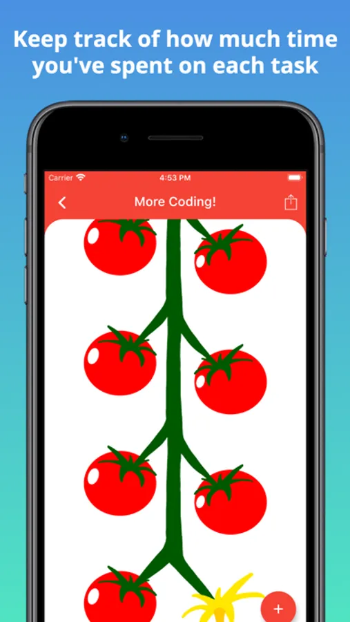 4) After the timer rings, you will see that your flower has grown into a tomato (this should help you see your progress and keep track of how much time you've spent on a task).