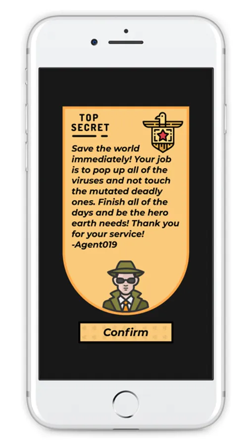 Each passing day, the mutated viruses will increase and the speed of the attack will also increase. Your job is to destroy each virus in each given day without touching the black viruses. Before starting the journey, make sure you prepare yourself mentally! It will be a long 24 day journey. Most of the agents we have chosen have made it up to week 2 but couldn't withstand any further. We believe that you can do it!