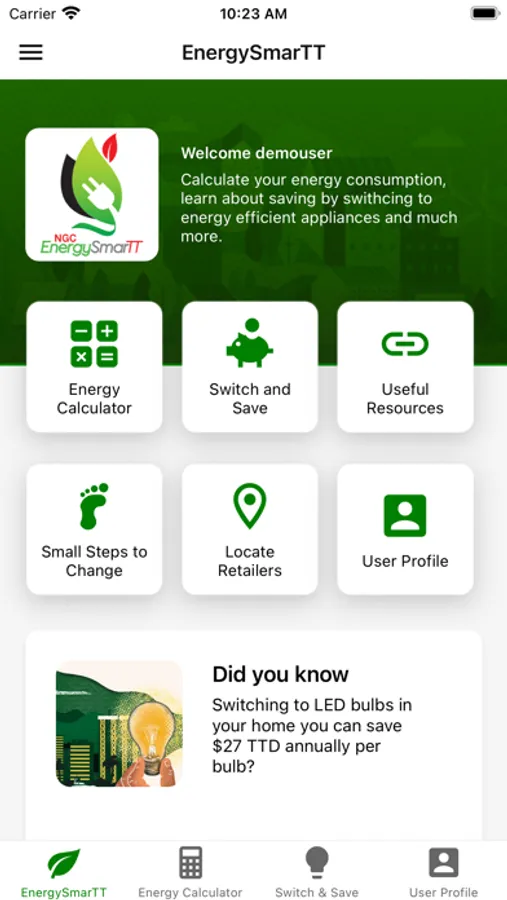 The goal of the app is to make the citizens of Trinidad and Tobago EnergySmarTT. The app provided is an educational tool used for sharing the benefits and opportunities energy efficiency offer for addressing climate change, potential monetary savings and connecting people interested in Energy Efficiency (EE) / Energy Conservation (EC) / Renewable Energy (RE) projects.