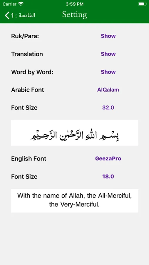 - Now user can Read full Sarah without translation in "Mushaf Mode"