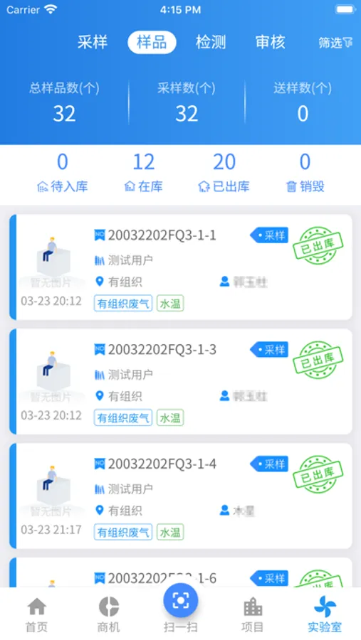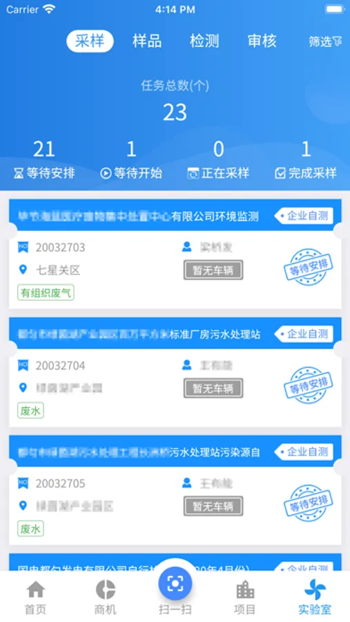 环评检测项目管理、资产管理、采样检测管理、考核管理、文档管理以及个性化的服务。
