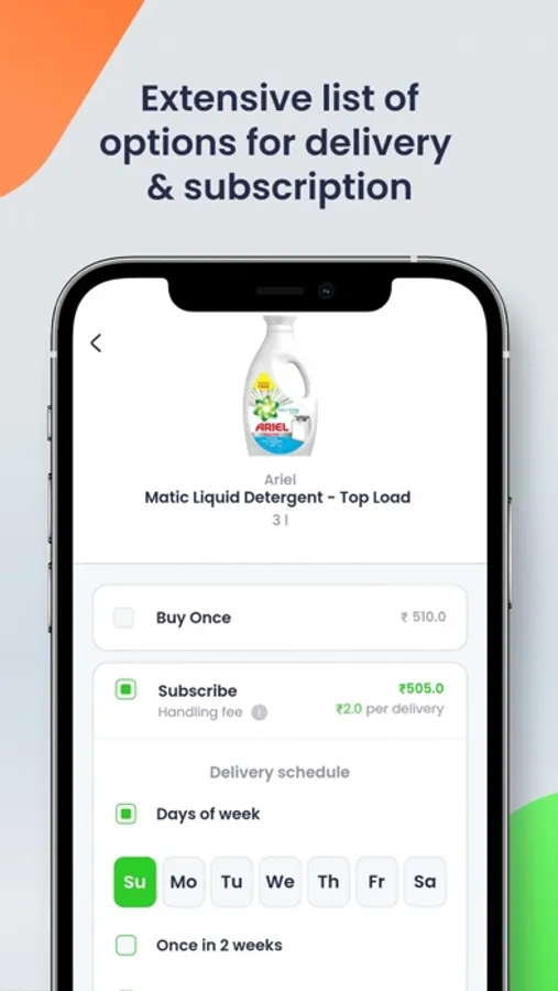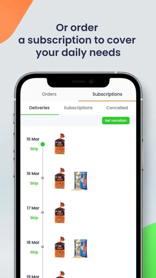 But wait, there's more! With our subscription feature, you can set up automatic deliveries for your everyday needs, so you'll never run out of your essentials again. Our app also offers convenient delivery slots that fit your schedule perfectly, making your life easier.