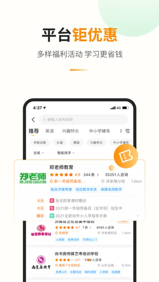 深耕互联网+教育10年,深受教育用户信赖的第三方平台,覆盖全国30多个省会、100多个地级市、6万多家教育机构、64万课程现,近千个教育行业。